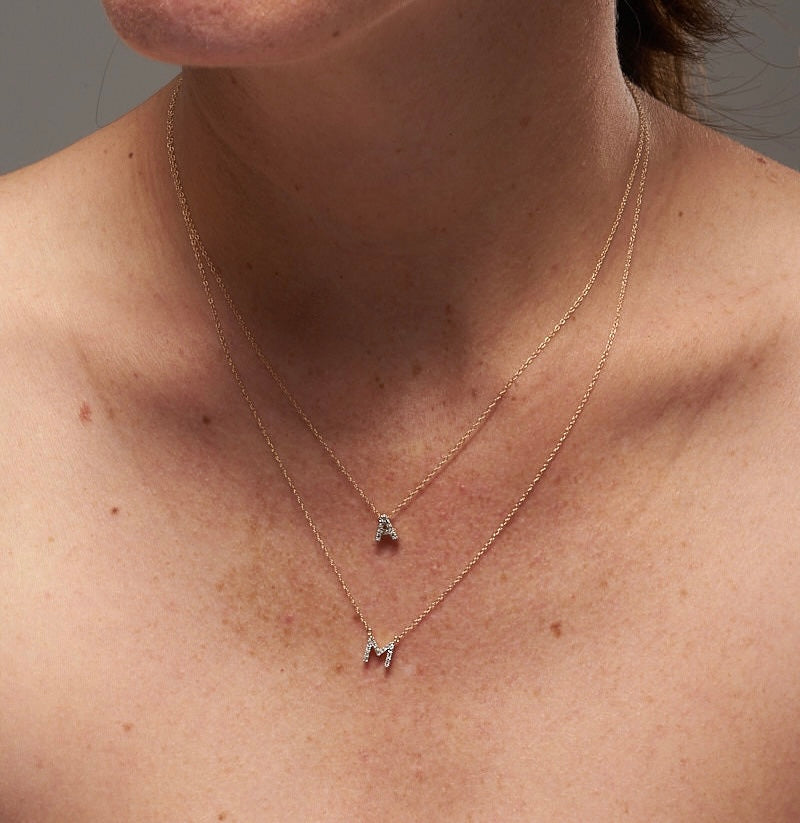 Gargantilla en oro blanco y amarillo de 14k, inicial con .05ct de diamante.